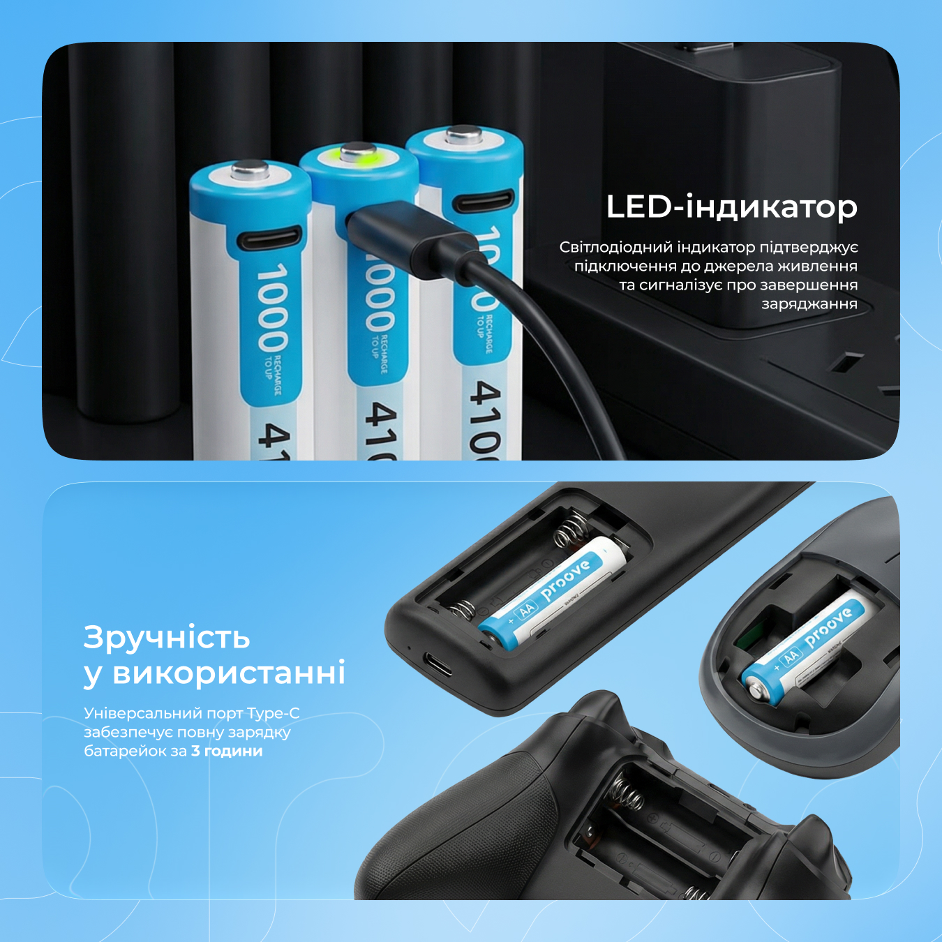Підходить для різноманітних пристроїв: пульти дистанційного керування, мишки та клавіатури, ліхтарики, дитячі іграшки, годинники, фотоапарати та інші гаджети, які працюють на батарейках формату AA. Завдяки багаторазовому заряджанню є практичним рішенням для пристроїв з постійним або частим використанням.