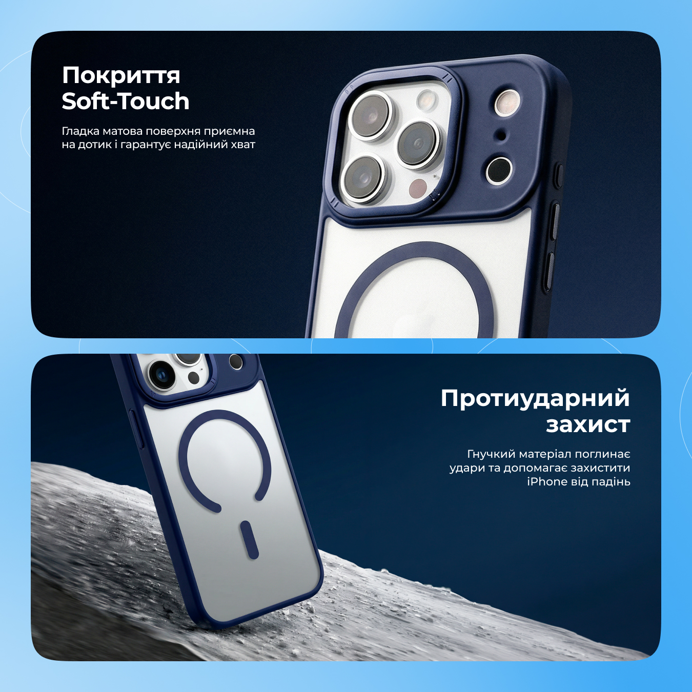 Чехол оснащен магнитным кольцом, что делает его совместимым с магнитными держателями и аксессуарами, предоставляя дополнительное удобство в повседневном использовании. Повышенная защита камеры помогает предотвратить царапины и повреждения.